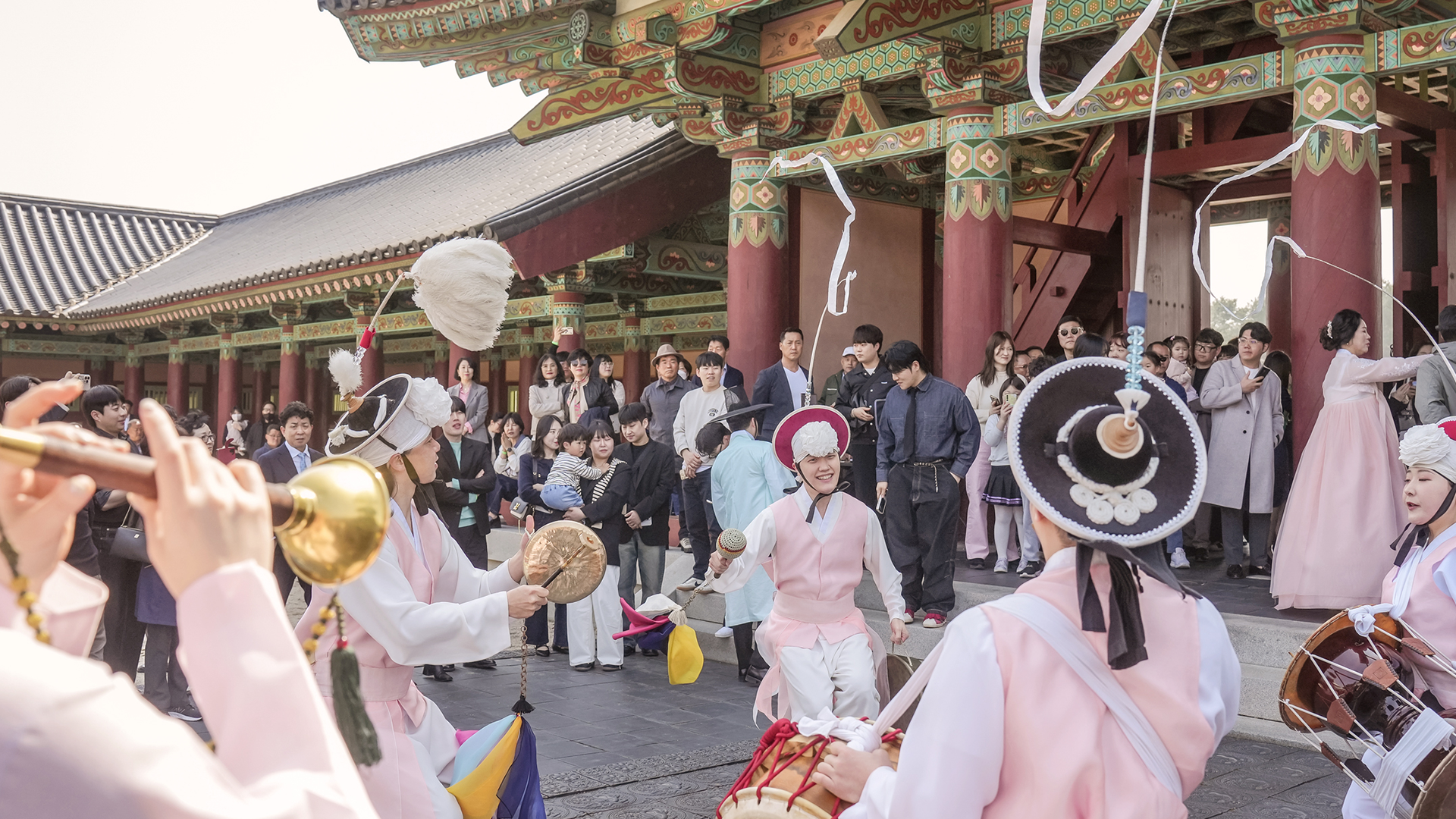 Officiants, attendants, gireuk bearers, flower children, pungmul troupe, artists, and staff