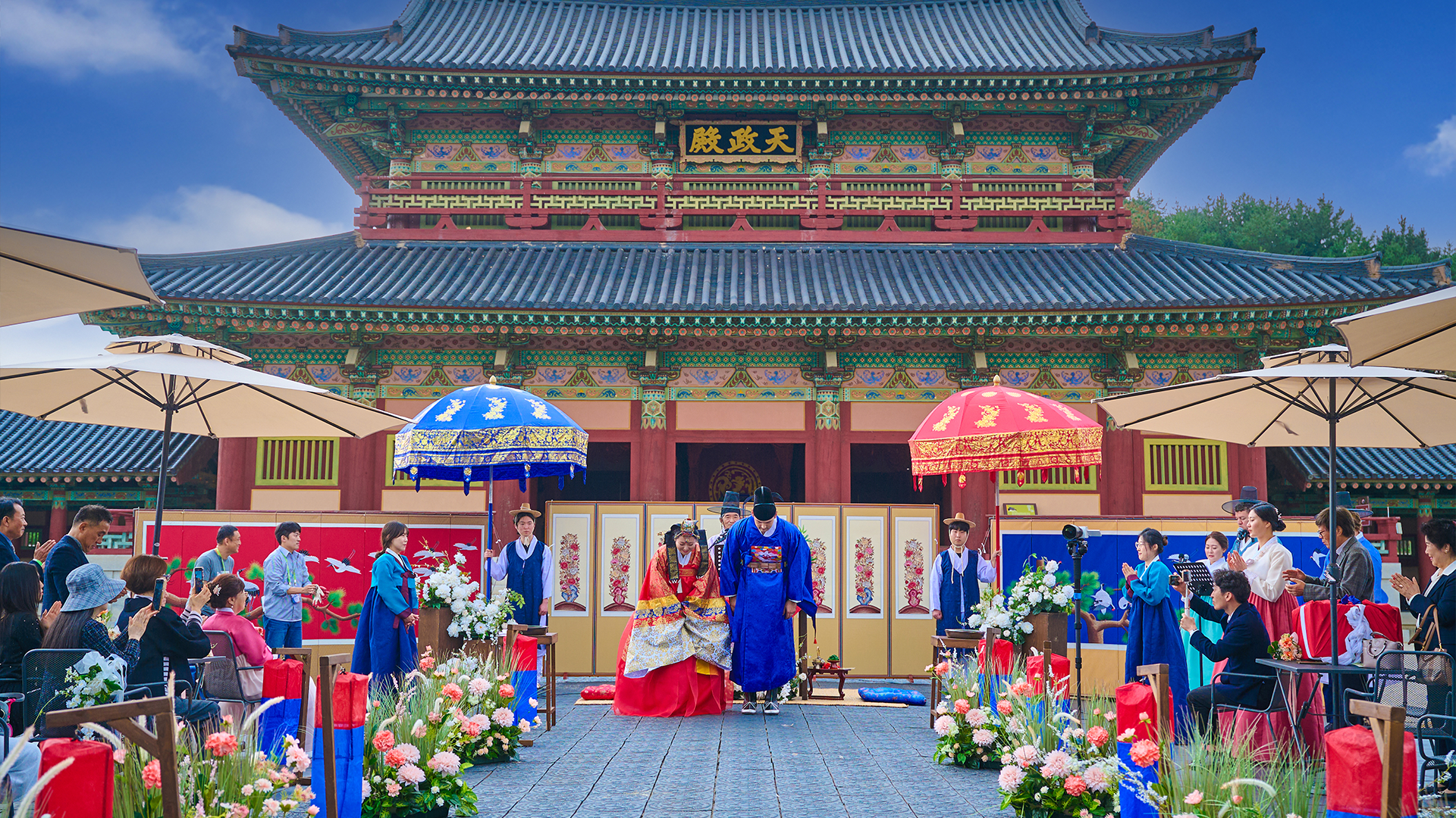 Officiants, attendants, gireuk bearers, flower kids, performers, and staff